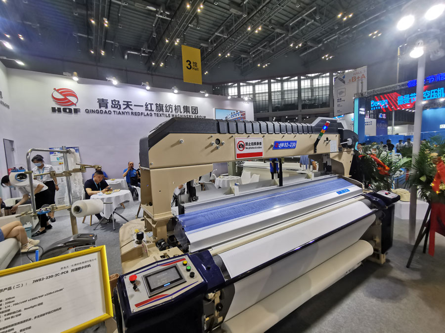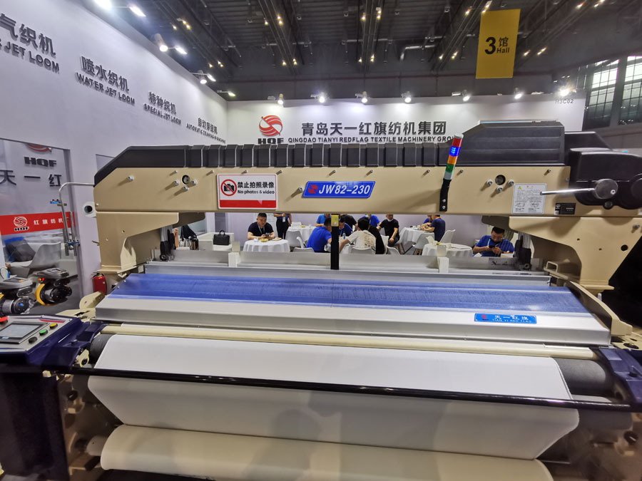 青島天一紅旗紡機(jī)集團(tuán)有限公司營(yíng)銷部經(jīng)理李德勝說:“高效節(jié)能、智能實(shí)用是本次參展樣機(jī)的主題。幾天來,不少客商都對(duì)天一紅旗的噴氣織機(jī)和噴水織機(jī)表達(dá)了購買意向。”